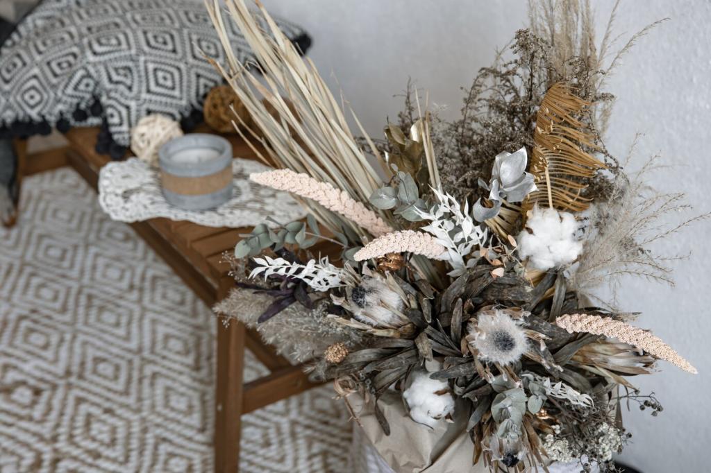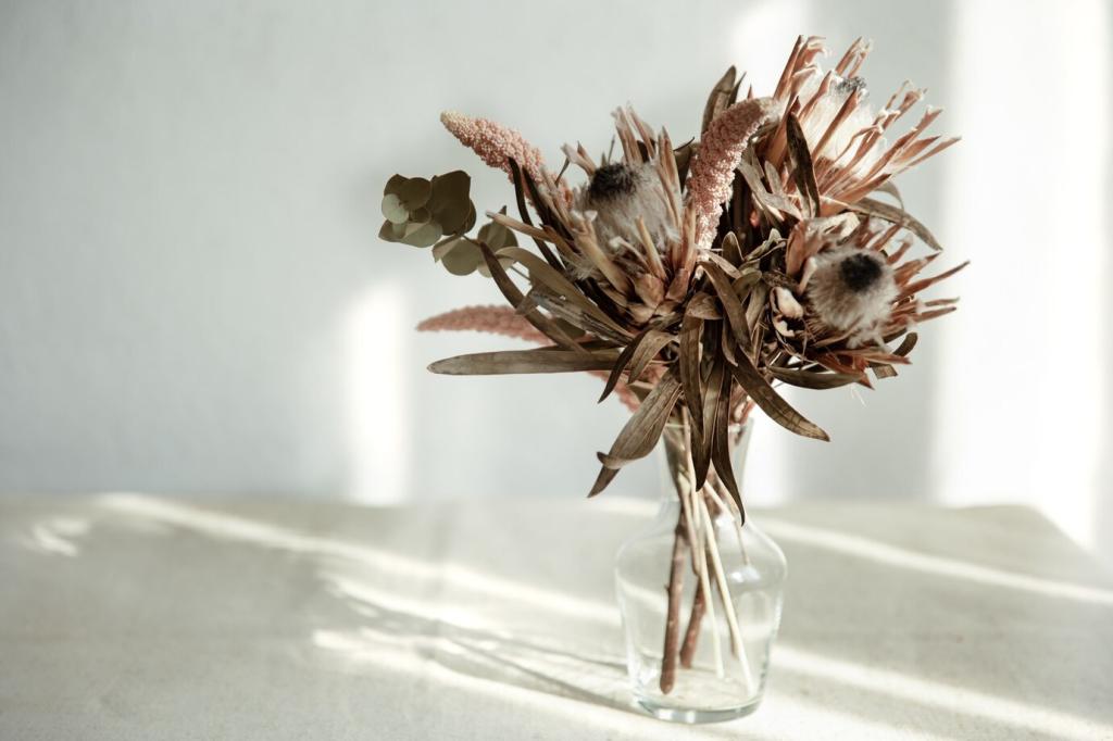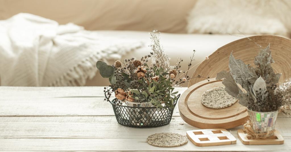 Ein Morgenkaffee im Lichtfleck, abends fünf Atemzüge am offenen Fenster, wöchentlich ein frischer Zweig. Kleine Rituale verankern Verbundenheit. Teile dein Ritual, und wir fügen es in unsere Community-Ideenliste ein.
